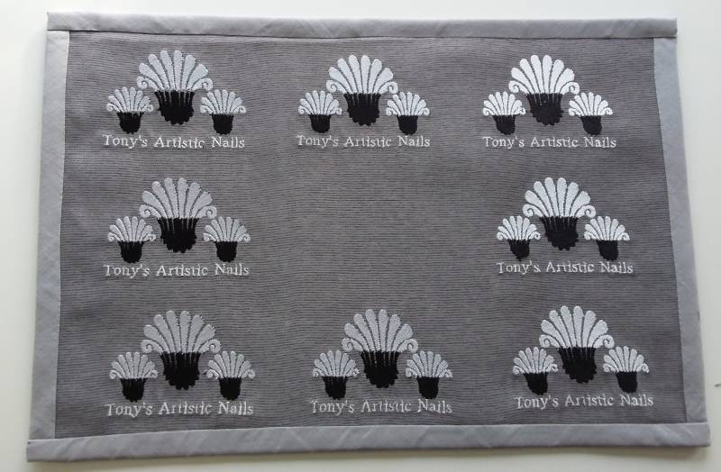 Ik heb haar eigen logo gedigitaliseerd en haar bedrijfsnaam en dit in verschillende kleuren geborduurd.