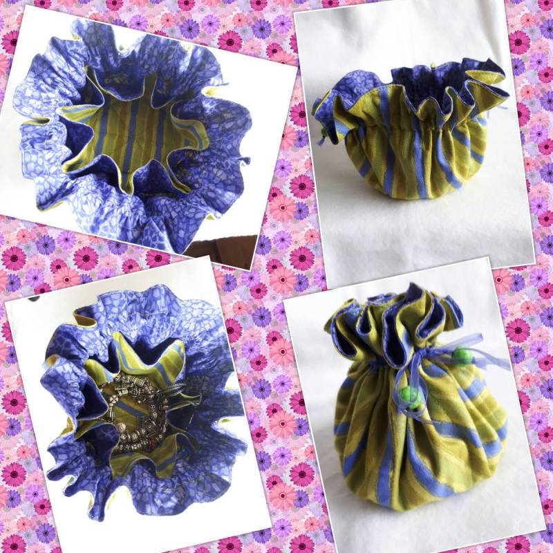 is een handig opbergzakje voor uw sieraden gemaakt van quiltstofjes.