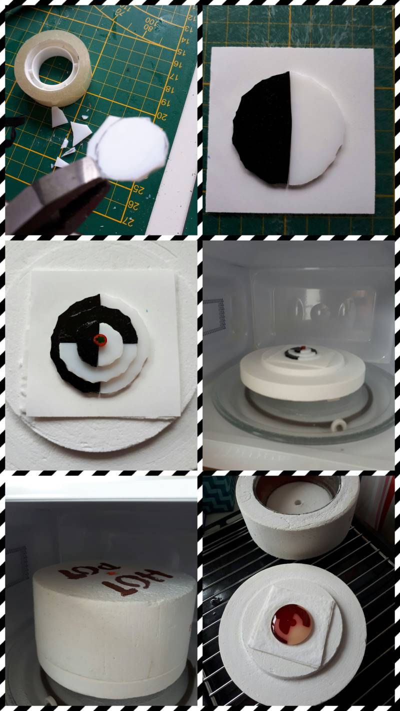Hier onder ziet u een foto collage hoe ik te werk gaat met het glas en het het glas gesmolten wordt met de hotpot voor de magnetron.